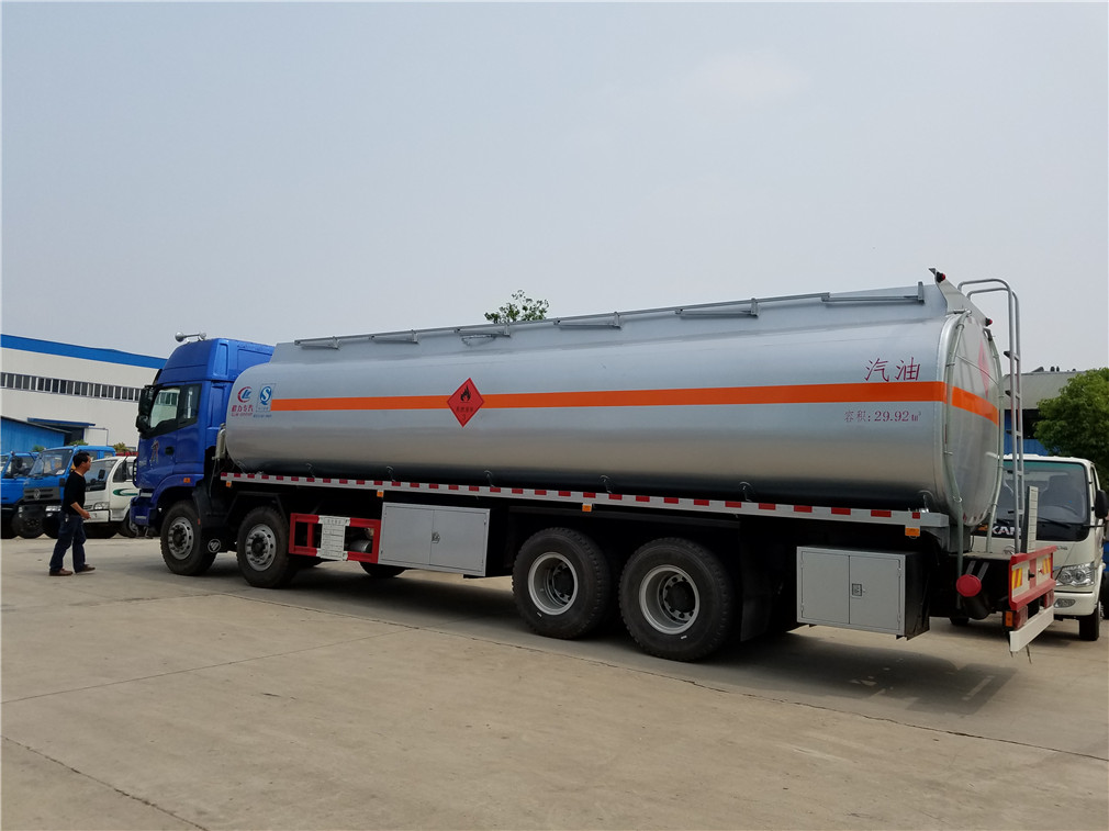 | 其他 | 1、该车适用于危险品运输。2、运输介质为柴油,煤油时密度分别为830,800千克/立方米;类项号:3;罐体有效容积:20.6立方米。罐体外形尺寸(长×长轴×短轴)(mm):9000×2270×1470。运输介质为汽油时密度为700千克/立方米;类项号:3;罐体有效容积:24.3立方米。罐体外形尺寸(长×长轴×短轴)(mm):9000×2410×1620。3、仅采用底盘子午线轮胎和带ABS的底盘,该车前轮安装盘式制动器,前置排气管,装配限速装置,限速79km/h。安装带有卫星定位功能的行驶记录仪。ABS控制 | ||